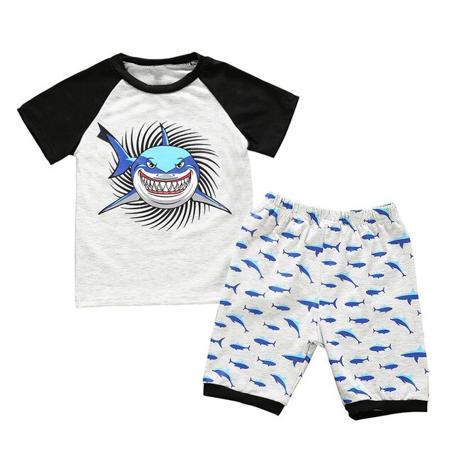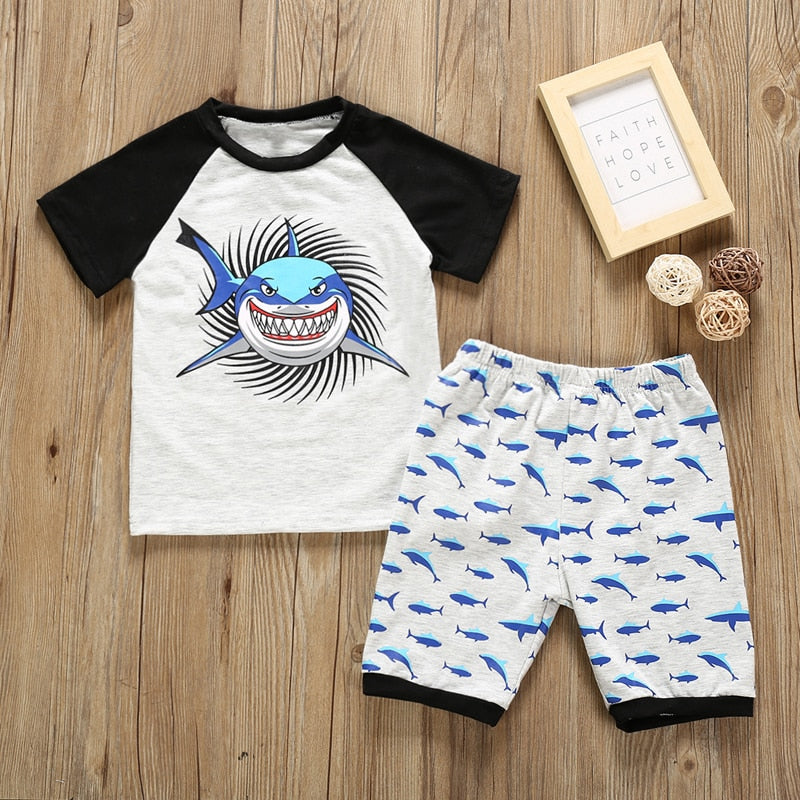 Toddler Boy Clothes Set Summer Cartoon Shark T-Shirt Tops+Shorts Pants 2PCS Outfits Set Cute Animal Printed Kids Baby Clothing