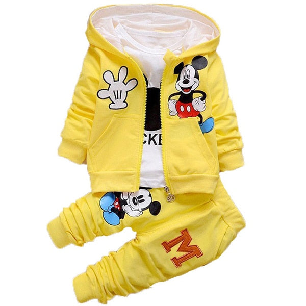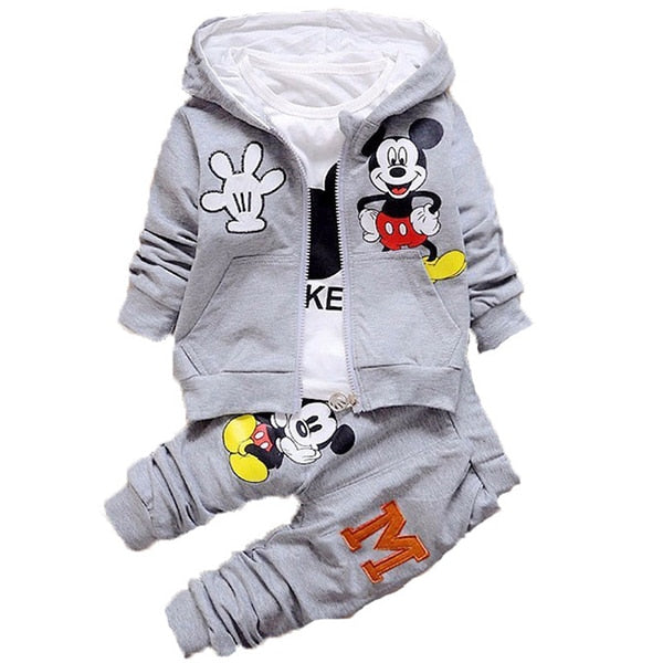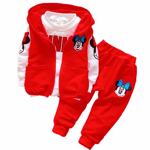 Autumn Cartoon 3pcs Minnie Mickey Clothing set kids Clothes Boys Girls Hooded Jacket +T Shirt +Sports Pants Casual Sprot suits