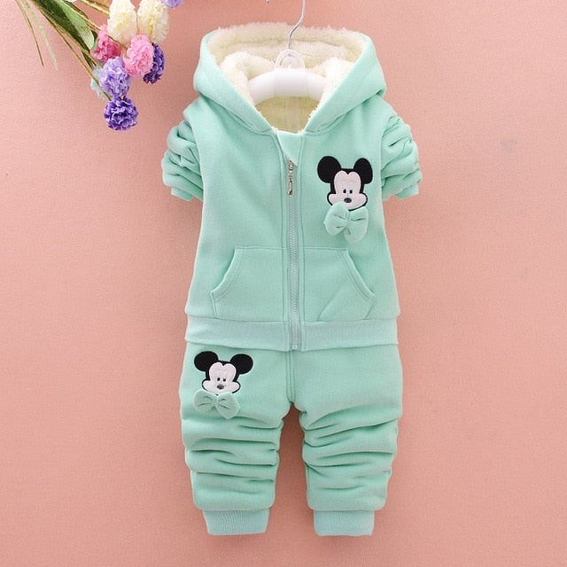 Baby Girls Minnie Clothing Sets Kids Girls Winter Thicken Cotton Long Sleeve Warm Outerwear+Pants Suit Toddler Set For 1-4 Years