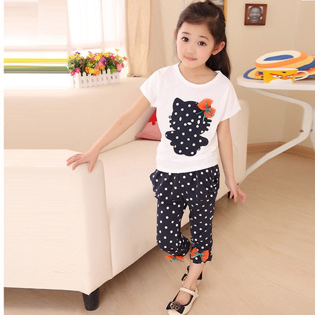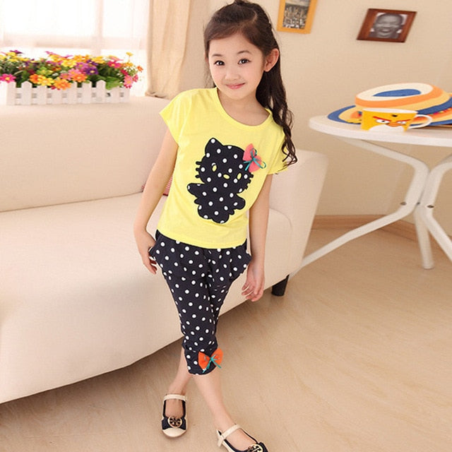 2017 Girls Summer Casual Clothes Set Children Short Sleeve Cartoon T-shirt + Short Pants Sport Suits Girl Clothing Sets for Kids