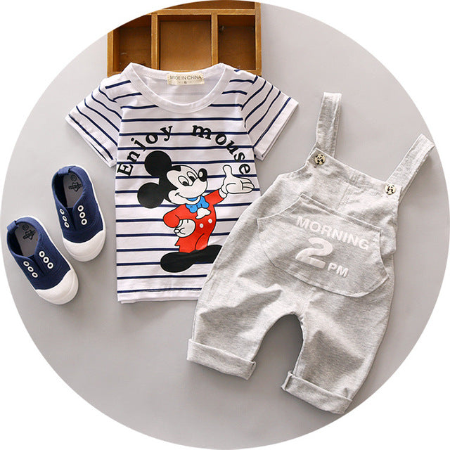 C26 0-4Y 2016 new children's summer set micky mouse clothes tops t shirt pants kids 2 pcs suit ensemble fille girls clothing set