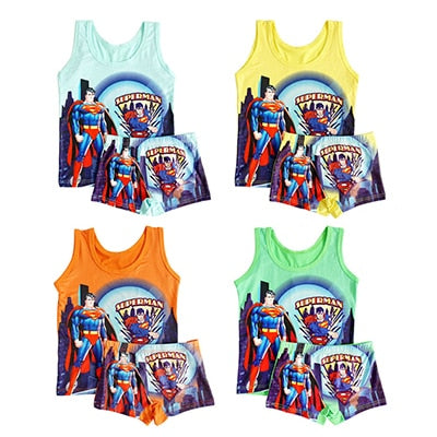 Hot Marvel Kids Clothing Summer Cartoon sleeveless T-shirt Children Vest Spiderman Superman T shirts Panties Boxers Briefs set